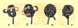 Узел шаровидной формы который делается на концах снастейЭто тот же самый узел, но завязанный на вертикально расположенной основе. Прямой узел, служит для...